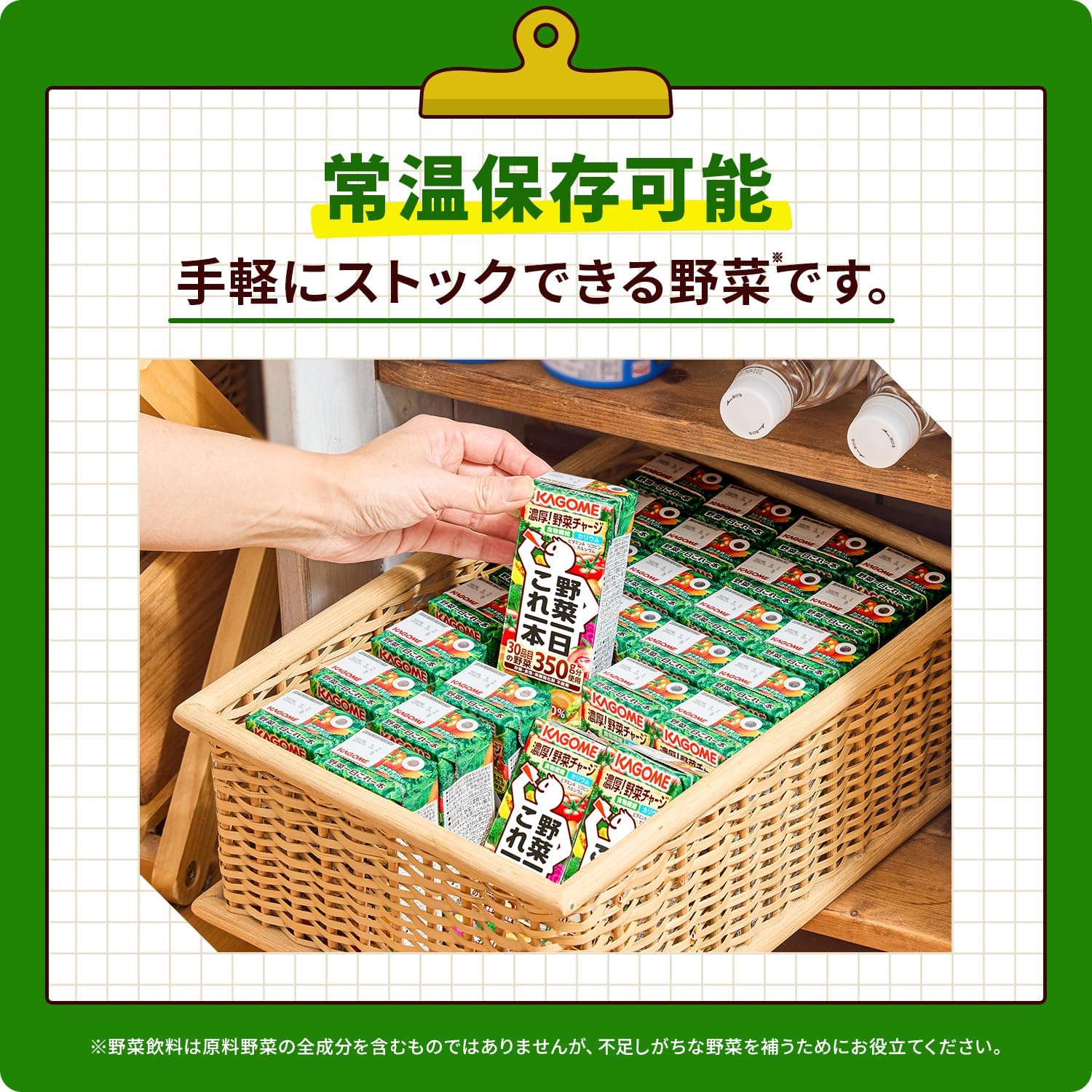 - 野菜の成分が沈殿することがありますが、品質には問題ありません。無菌充填の完全密封包装ですから、未開封の場合は常温で保存できます。