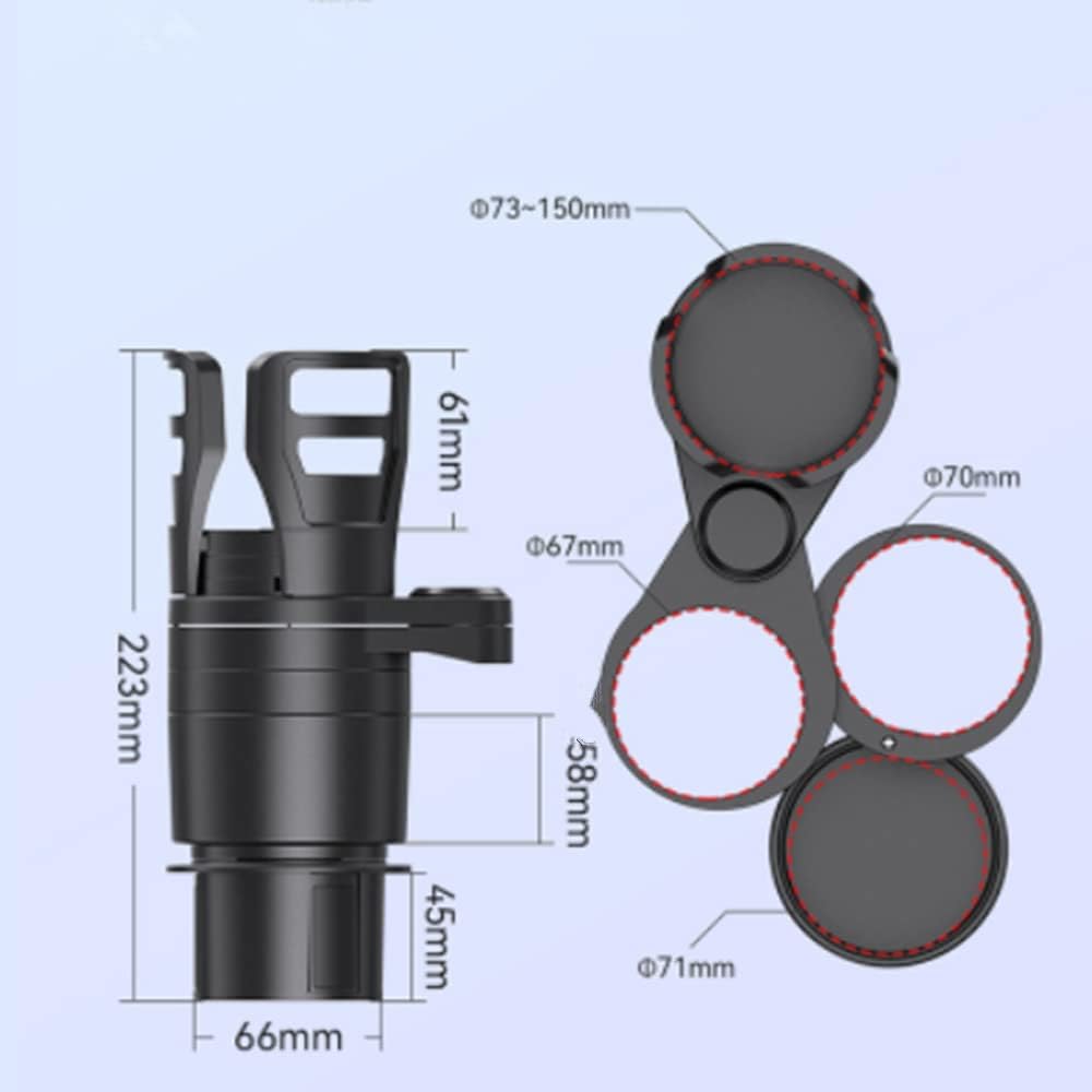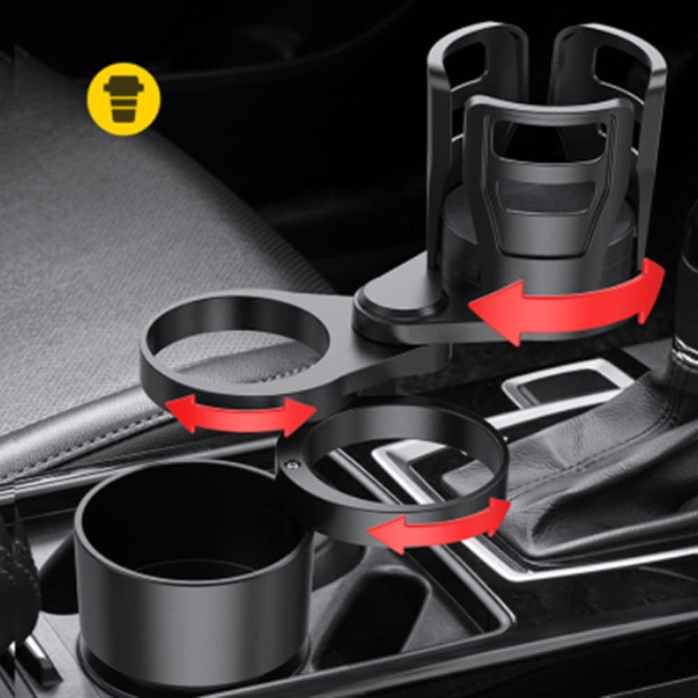 - 車内のスペース不足の問題を適切に解決します。 360度回転するブラケット、カップホルダーは4つに分割できるように設計されており、さまざまな種類のアイテムを収納できます。ブラケットの3つの回転シャフトを回転させて、他の3つのカップホルダーを分離します。飲料缶、コーヒーカップ、即席めんボウルなどを入れることができます。