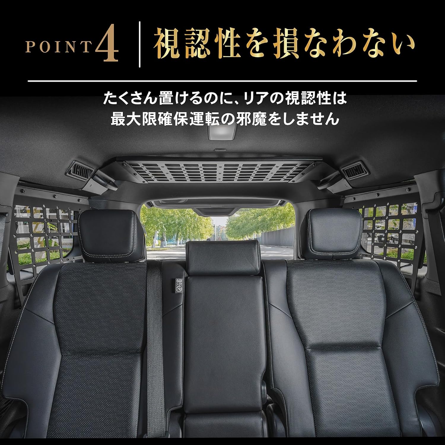 - POINT.4 「視認性を損なわない」 たくさん置けるのに、リアの視認性は最大限確保 運転の邪魔をしません