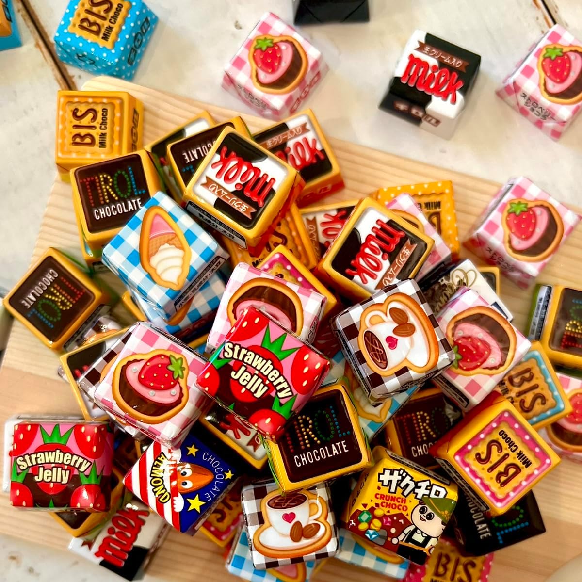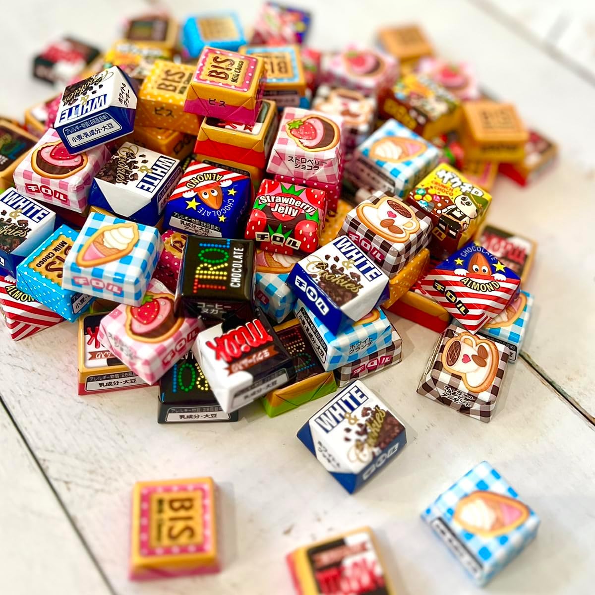 - みんなに人気の4種の定番チロルチョコを、カラフルに散りばめました