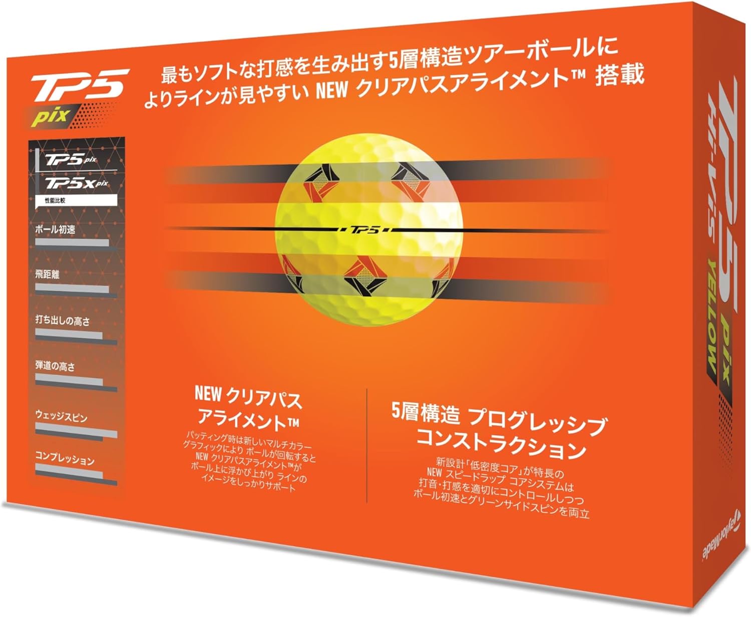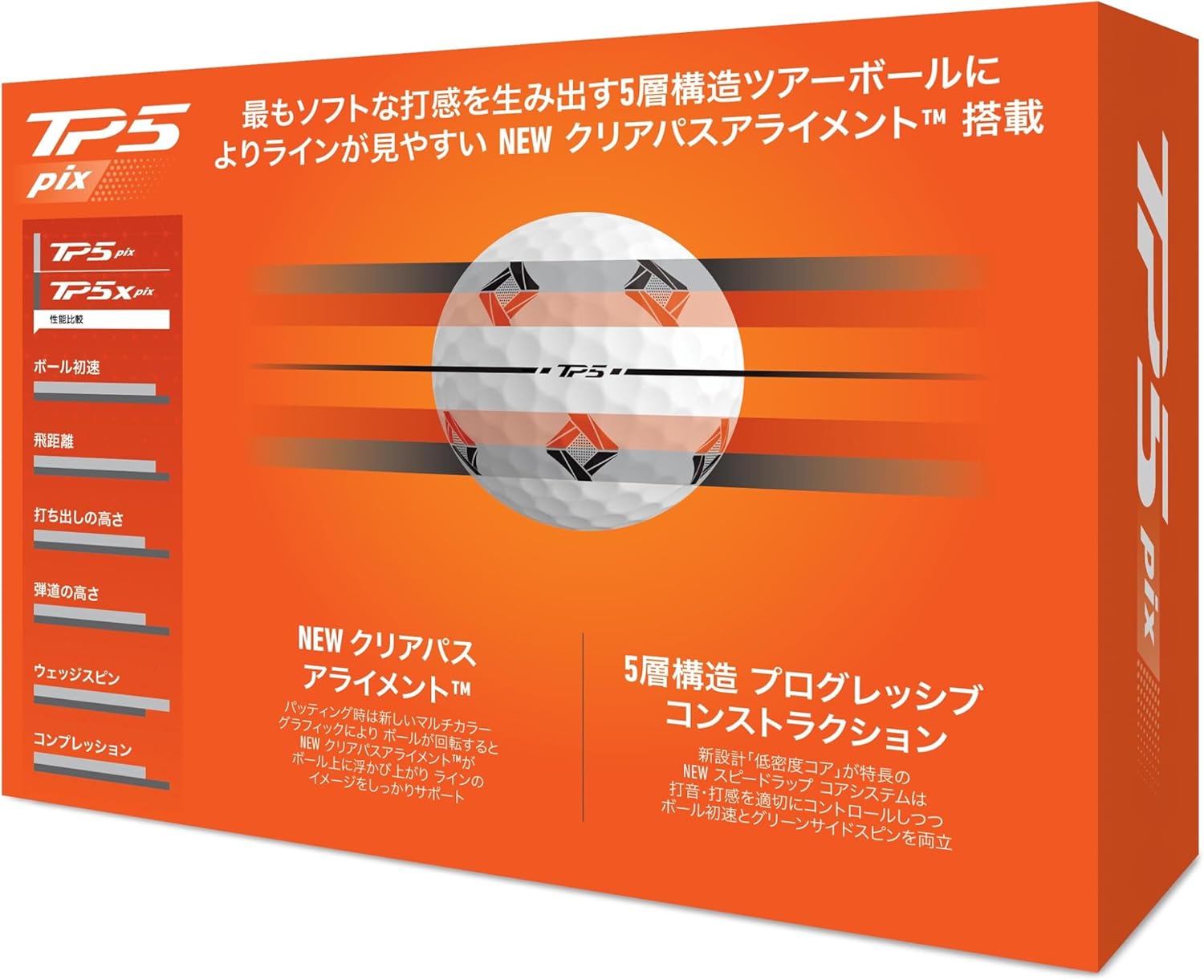- :「TP5 pix」ボールは、ツアープロも使用する