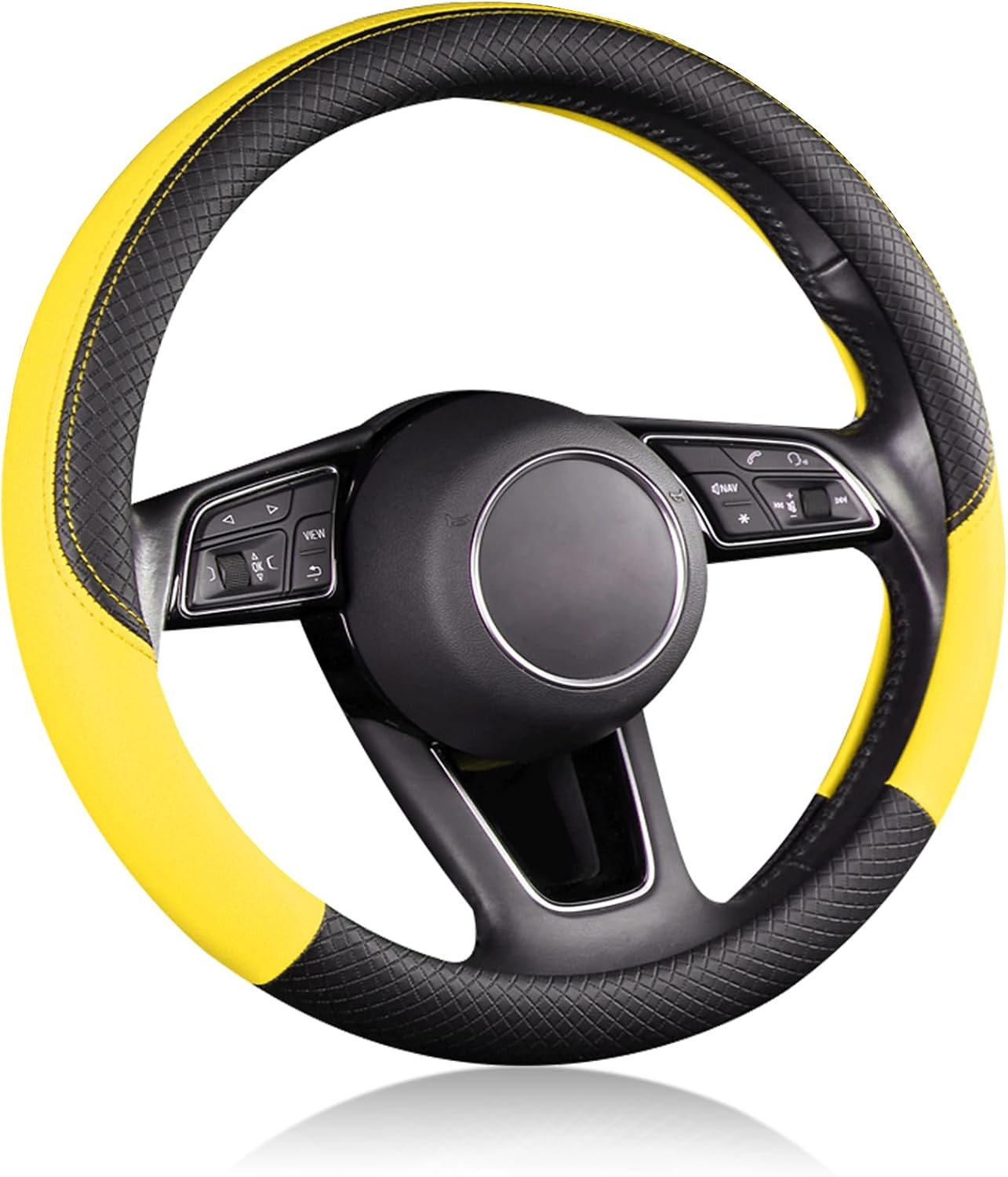 - 【滑り止め】メッシュの滑り止め付きインナーリムは、ステアリングホイールにぴったりとフィットし、ハンドルカバーのオフセット防止。3Dひし形デザインにより、手触りとグリップが向上。また、滑り止め機能や優れた操作感により、長時間の運転でも疲れることなく安全に操作することができる。