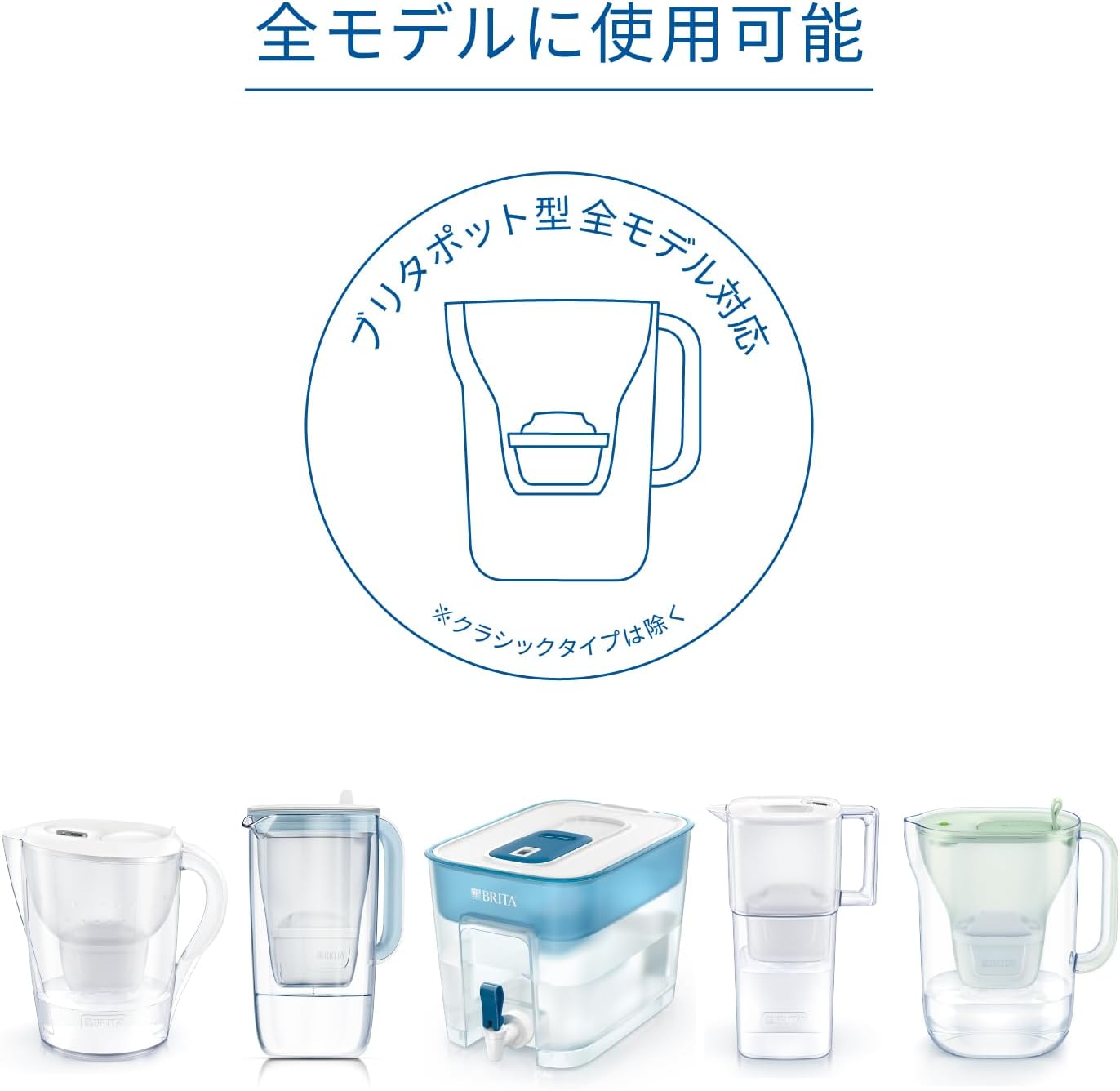 - ブリタ(BRITA)のポット型(ピッチャー型)、タンク型浄水器の全モデルにご使用いただけます(クラシックを除く)