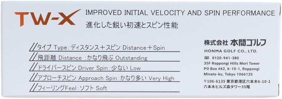 - 「飛んで」「止まる」をコンセプトに、飛距離性能とスピン性能のバランスを重視し開発したツアー系ボール『TW-X』。