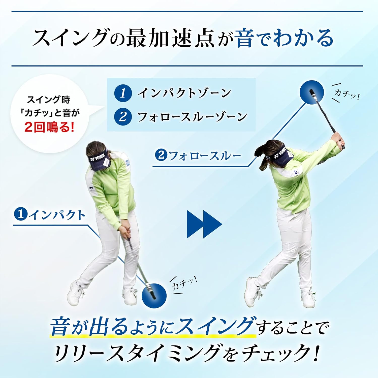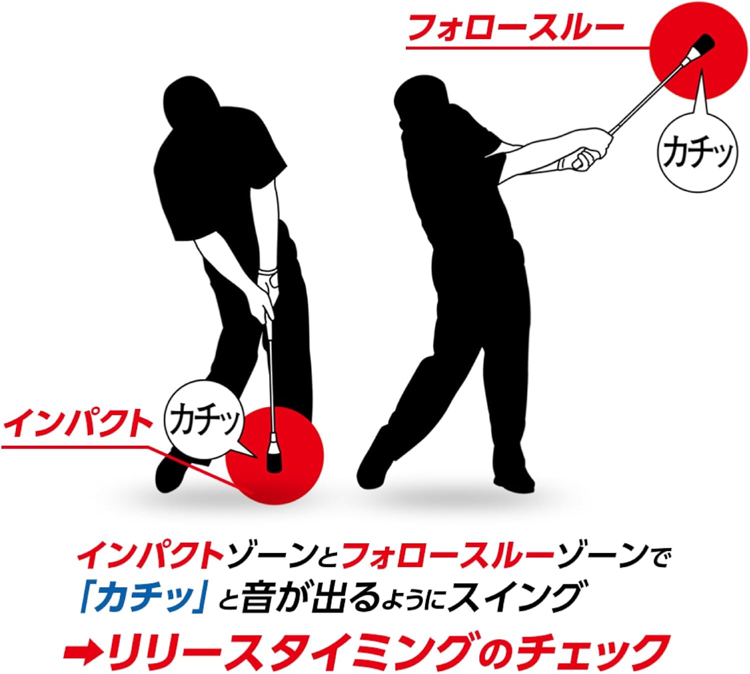• ヘッドの加速で、シャフトが伸びるので、コックのリリース ポイントを、タメを意識しながらスイング練習ができます。