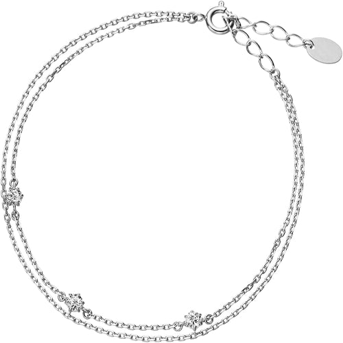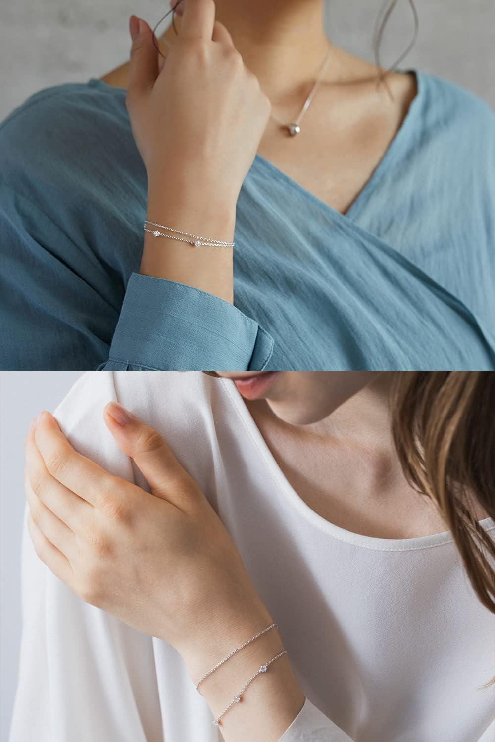 - 【上品な印象に】キュービックジルコニアが華やかさを添える、爽やかで上品な印象のブレスレット。ほどよいボリュームの2連のチェーンが女性らしい華奢な手元に。