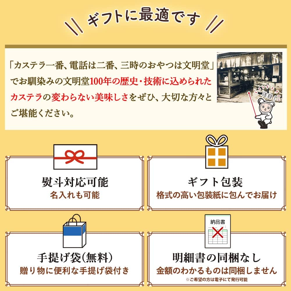 文明堂のカステラ 0.5A号 手土産/ギフト/お礼/お返し 2本入(5切れ×2本)