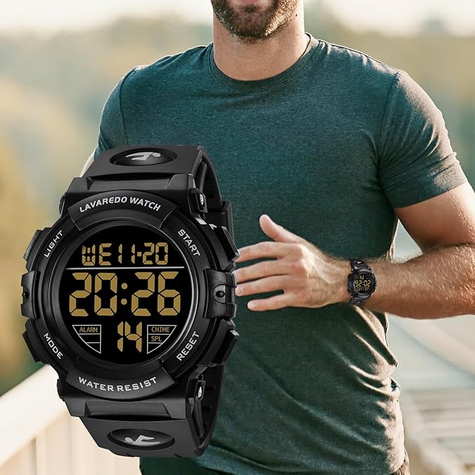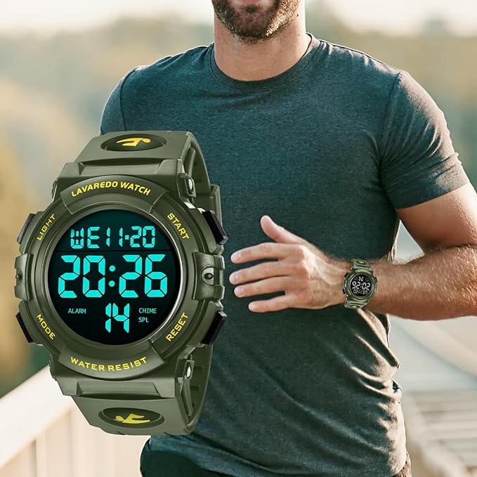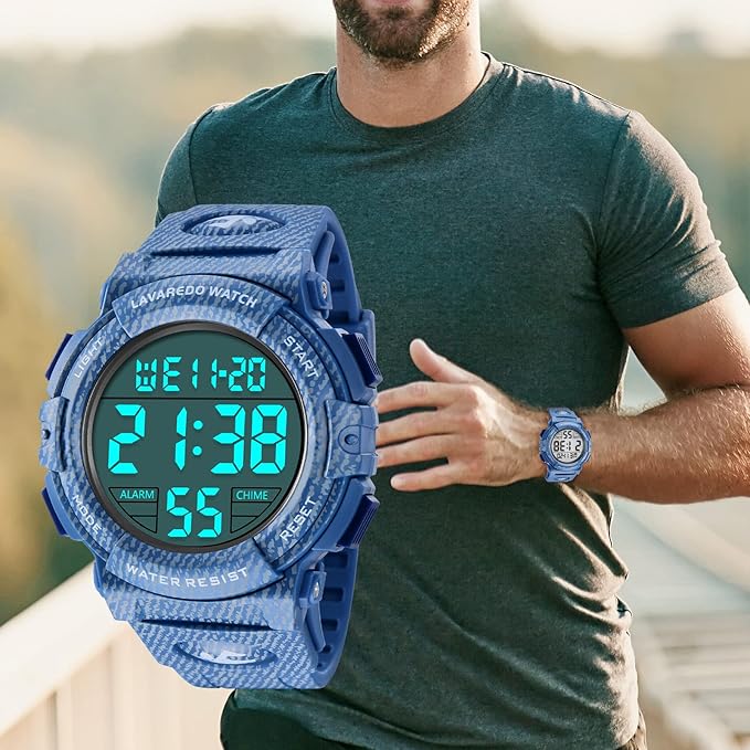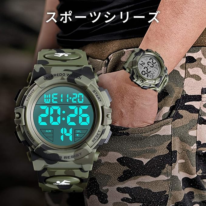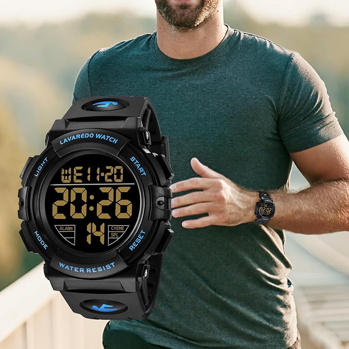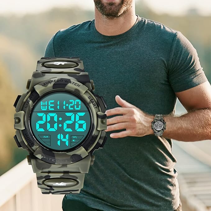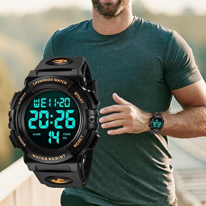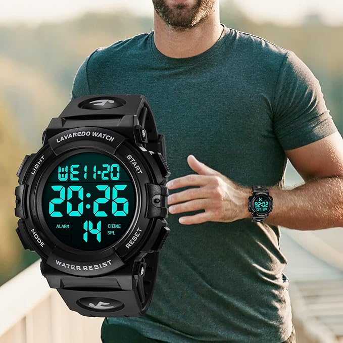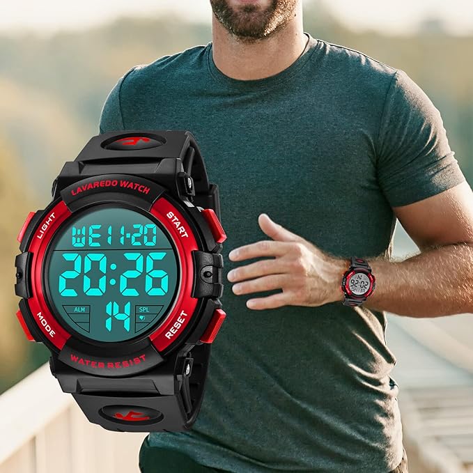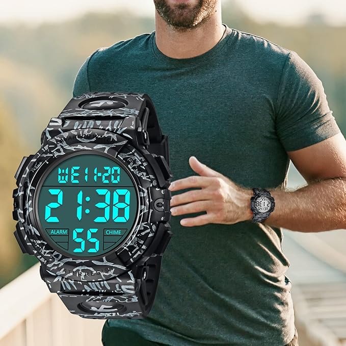 - ♚[スポーツ腕時計]ファッションな外観デザインとスポーティーなダイヤルスタイル、スポーツウォッチとしては良い選択です。大きな文字盤とLEDバックライト付き、暗闇の中でも正しい時間を示し、読みやすいです。大きなデジタル表示と発光デザインで、高齢者でも使いやすい。ランニング、登山、釣りなどのアウトドアスポーツと屋内スポーツの両方に最適です。