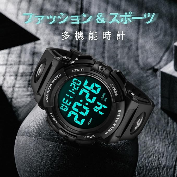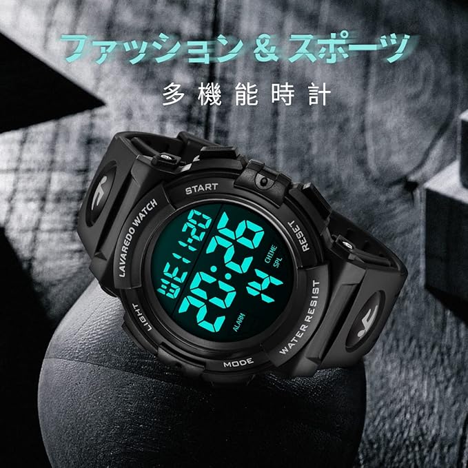 - スタイリッシュな外観と高品質材質を採用し、時間表示、日付表示、目覚まし時計、ストップウォッチ、バックライト機能を備えている腕時計は、日常のコーディネートとしても、スポーツや外出時にもぴったり。