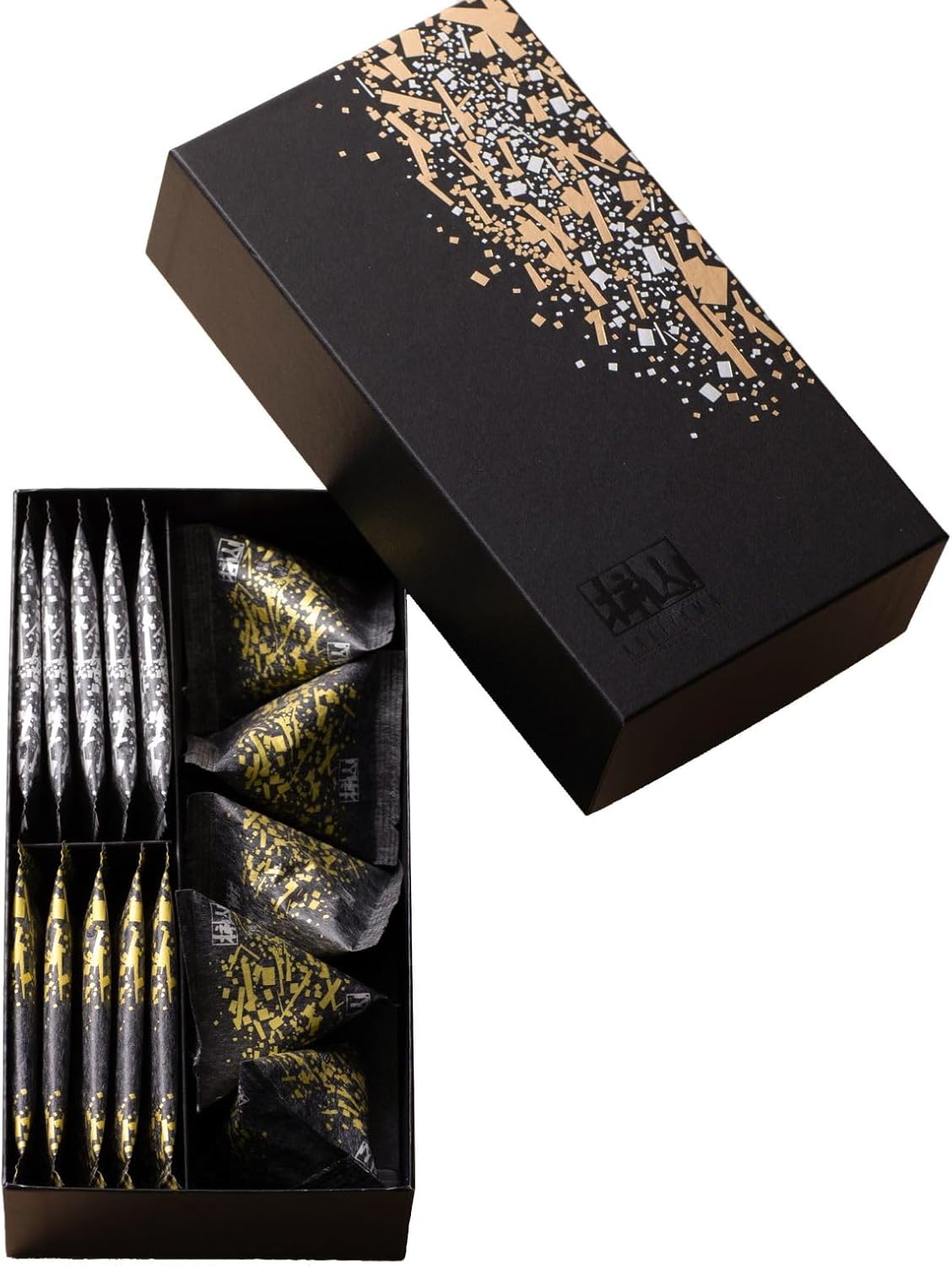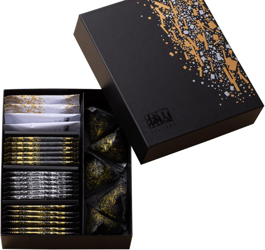 赤坂柿山の一番人気商品。黒地に金銀振りの上品な装いはシーンを選ばずギフト・手土産としてご利用いただけます。