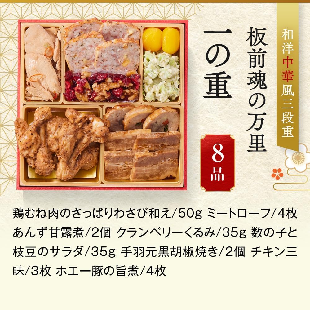 (12月31日着)板前魂 万里 おせち 和洋中 三段重 3人前 37品目