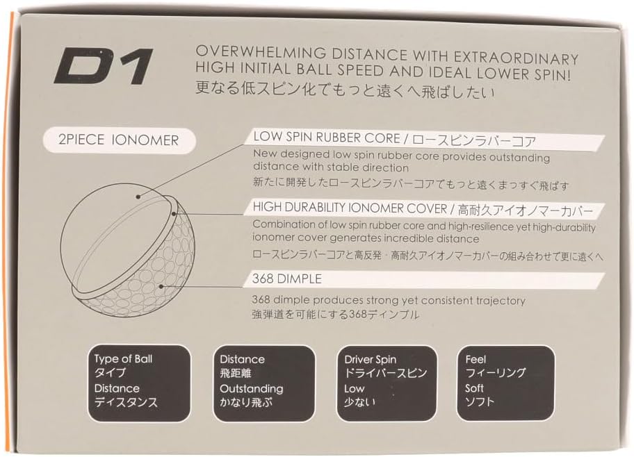 - ・高耐久アイオノマーカバー使用:ロースピンラバーコアと高反発・高耐久アイオノマーカバーの組み合わせでさらに遠くへ。