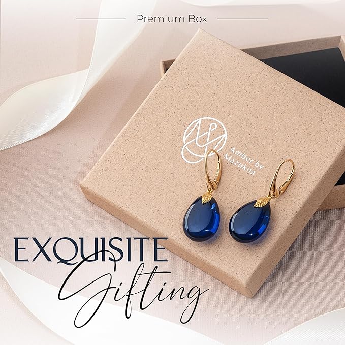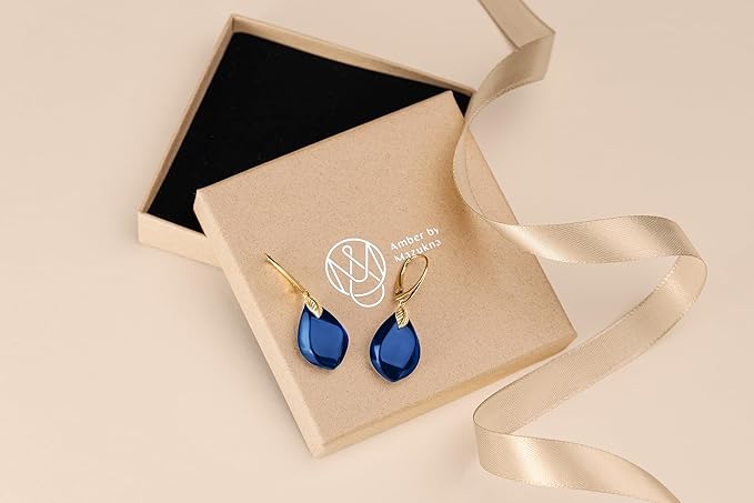 Amber by Mazukna 琥珀ピアス ブルーアンバー Silver925 ゴールドプレーティング レバーバック レディース
