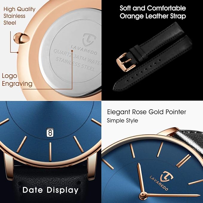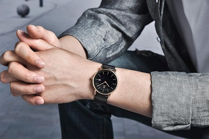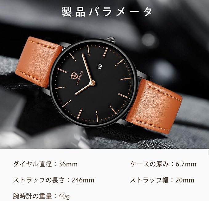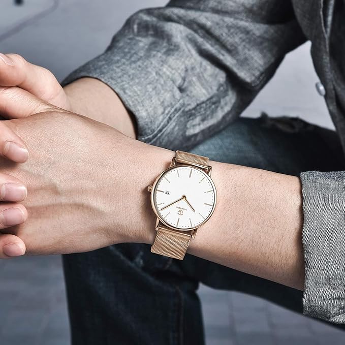 - ⌚外観: 実用的な超薄型文字盤、2針アナログディスプレイ(時針+分針)、3時の日付表示。シンプルでスタイリッシュなユニセックス腕時計、日本に適したケースサイズ。仕事、レジャー、パーティー、その他の行事に適しており、あなたの生活に色を添えます。
