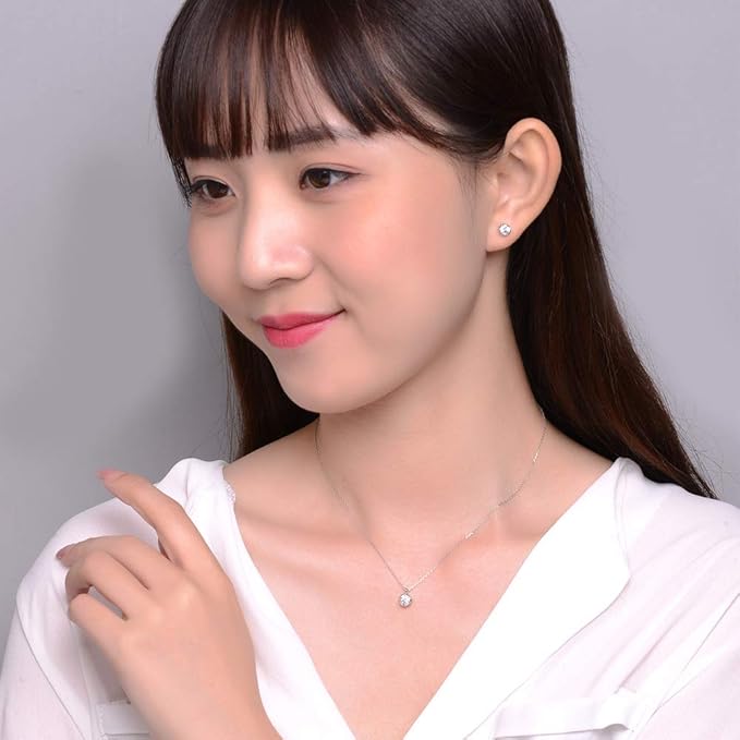 • 製品仕様: ペンダントサイズ: 横 8mm× 縦 8mm。 ネックレス チェーン:40+5cm 長さ調整可能 。 ピアスサイズ: 横 7mm * 縦 7mm。素材:5A ジルコニア、シルバー925。ペンダントストーンサイズは:約0.8カラット、ピアスストーンサイズは:約0.45カラット/個。付属品:パッケージケース、ベロアポーチ、専用磨きクロス、純銀キャッチとシリコンキャッチ