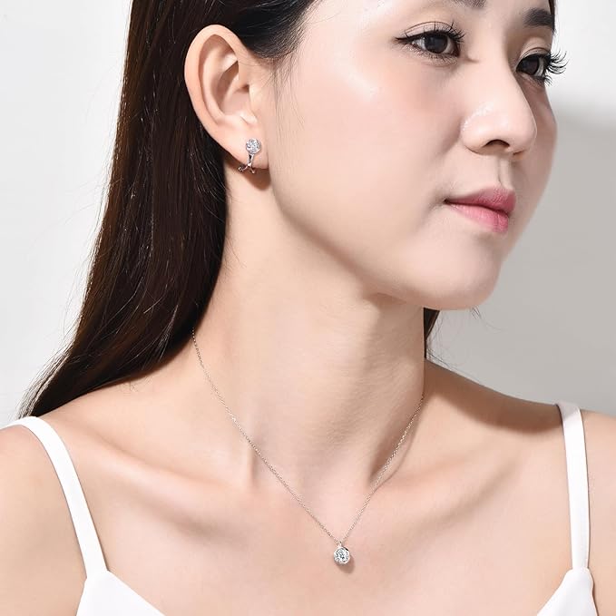 [Free bird] ネックレス レディース ピアス セット 「バラのキッス」 最高級 ジルコニア シルバー ペンダント 金属アレルギー対応 アクセサリー 一粒ジュエリー 誕生日 記念日 母の日のプレゼント