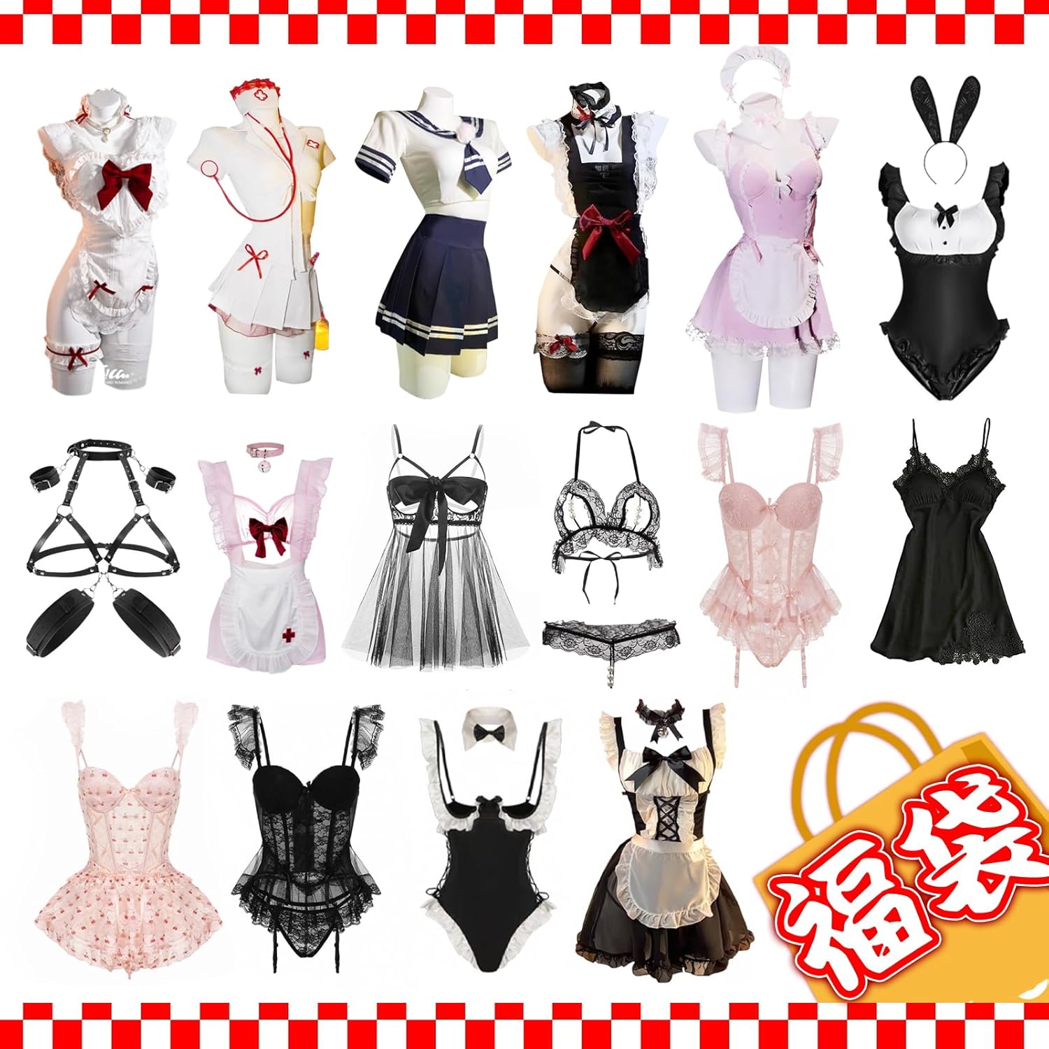 ランダム発送で届くセクシーランジェリーセット。過激で大胆なデザインから可愛い系まで、幅広いスタイルを取り揃え、どれが届くかは開けてからのお楽しみ。上質なシースルー素材と計算されたカットラインが女性らしい曲線美を引き立て、透け感が色気を演出します。ボディラインを美しく見せる立体設計と華やかなディテールで、身につけた瞬間に特別な気分に。デート、女子会、パーティー、コスプレイベント、ナイトウェアなど、多彩なシーンで活躍します。自分へのご褒美はもちろん、恋人やパートナーへのサプライズプレゼントとしても喜ばれる、高品質で特別感あふれるランジェリーセットです。