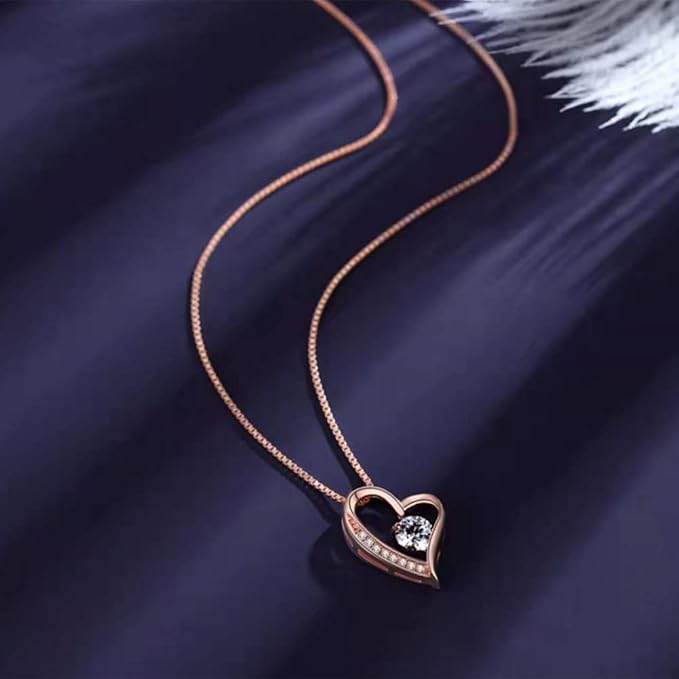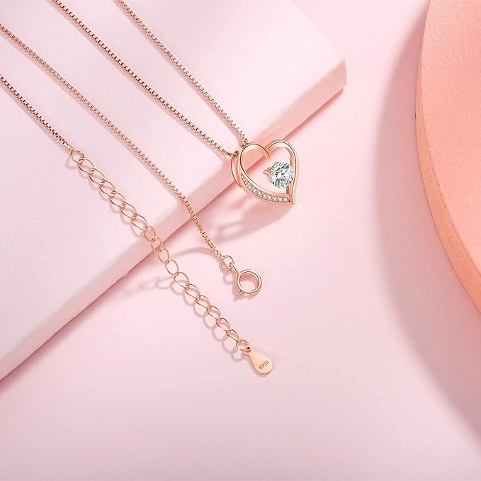 - 【 デザインへのこだわり 】 ネックレスの中心にある1粒、周りに8粒小さ目の高品質ジルコニアを使い、柔らかい曲線で描かれる左右非対称のハートモチーフは大人の可愛さの雰囲気を演出しています。シンプルなデザインでありながら、しっかりとした作りのネックレスが上品で洗練された印象を与えます。18kピンクゴールドコーティングを施しているシルバー925を使用しており、女性的なイメージを強くしてくれます。愛する人への贈り物として、言葉がなくても伝えられる魅力があります