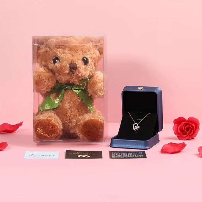 - 【パケージ内容】ハートレディースネックレス、テディベア、オリジナルジュエリーボックス、品質保証書、ジュエリークロス