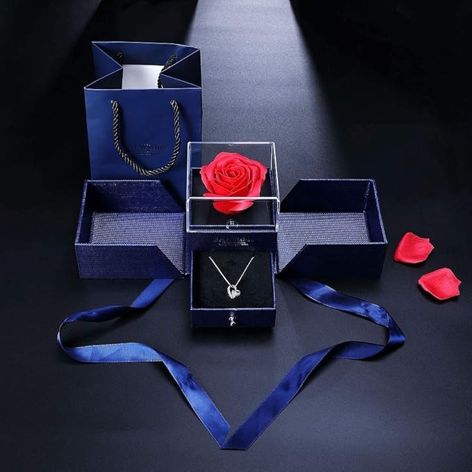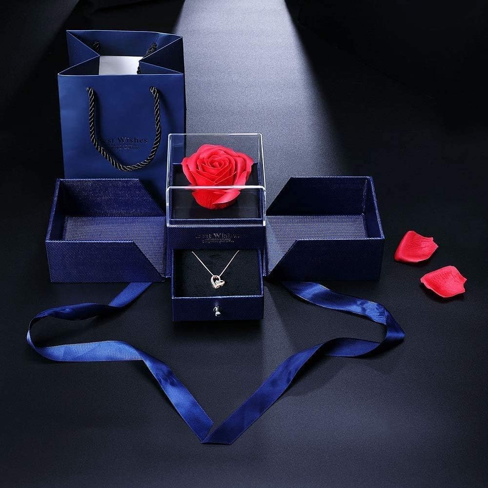 - 【プリザーブドフラワーのジュエリーBOX、永遠の愛 】 人気のオープンハートネックレスと精巧なローズのジュエリーBOXをセットにして、ギフトBOXを開けた瞬間に煌く、大輪のローズが見えます、ロマンチックさに徹するデザインとなっています。アイディアに満ち溢れ、愛する人への贈り物として、言葉がなくても伝えられる魅力があります。ご注意:ローズジュエリーBOXのネックレスを購入したいなら、バリエーションのASIN: B086H2J94KまたはASIN:B09N8YQB9Qをご選択ください。