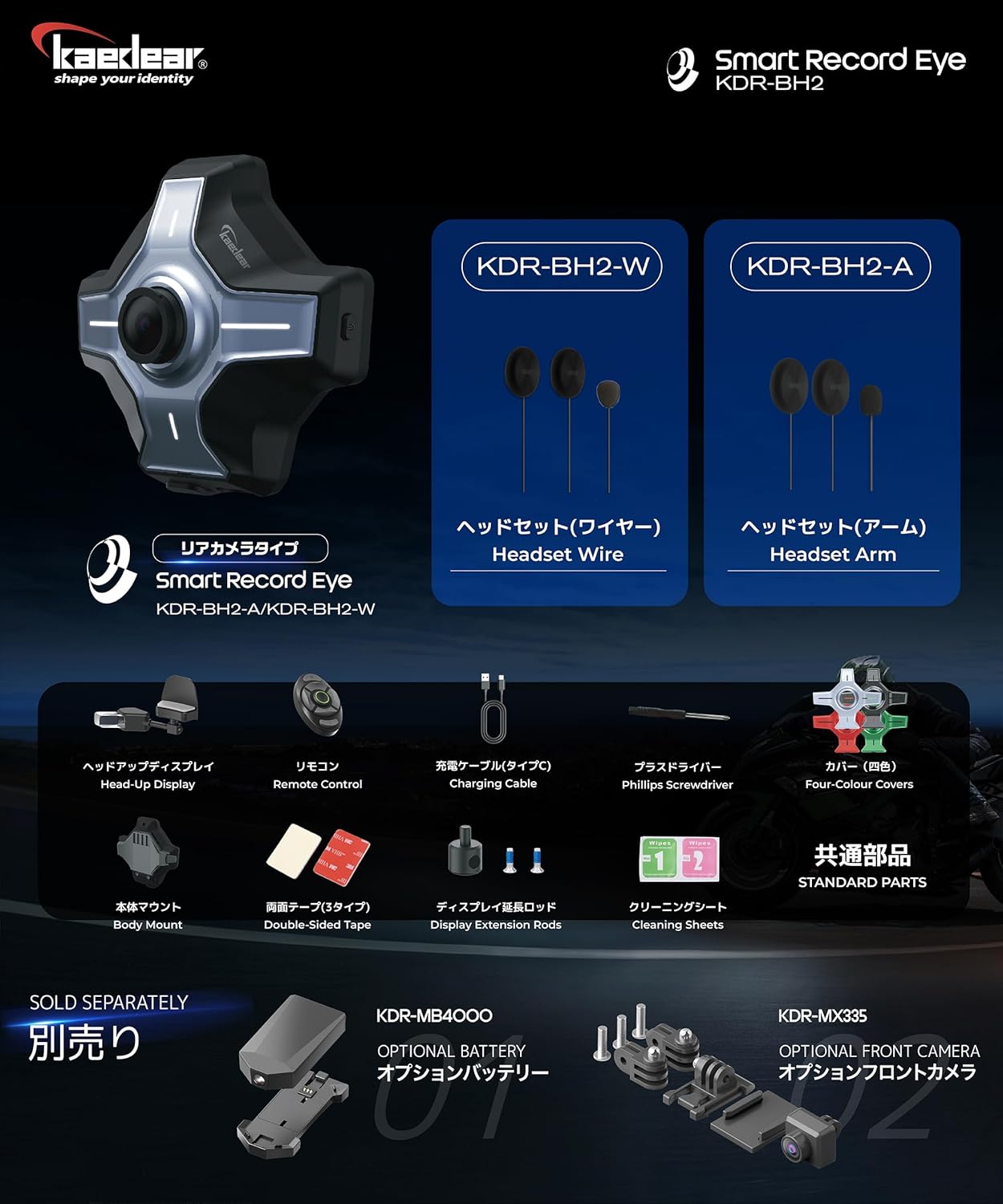- 【商品内容】 ■CPU:8コア(1.8Ghz) ■RAM:2GB、 ■バッテリー:1400mA(連続使用約3~4時間※録画状態1.5時間~2時間)、※別売り4000mA(連続使用約8~12時間※録画状態3時間~4時間)※実際の使用状況により前後します。※充電しながらの使用が可能ですが、防水性は専用ケーブル(KDR-MB4000・KDR-MX335一体型)を前提としています。汎用モバイルバッテリーをご使用の際は防水性を保てませんので、水濡れには十分ご注意ください。 ■操作方法:専用アプリ、ワイヤレスリモコン、音声コマンド、 ■専用アプリ:iPhone(App Storeからダウンロード)、アンドロイド(公式サイトからダウンロード) ■防水レベル:IPX66 ■ファームウェア更新:本機をWi-Fiに接続しOTAアップデート ※更新情報は公式サイトでご確認ください。