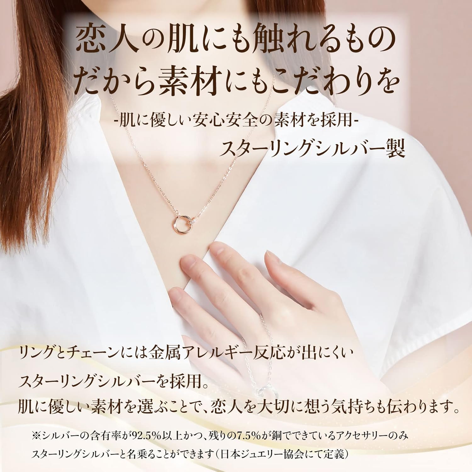 • 【 肌に優しい素材を採用 】 ペアネックレスのチェーン・リング部分には、金属アレルギー反応が出にくいシルバー製。(金属アレルギー対応)さらに、シルバーの中でもシルバー92.5%と銅7.5%を割金に使用したスターリングシルバーという品質の高いシルバーを採用しています。※金属アレルギー反応を100%防ぐものではありません