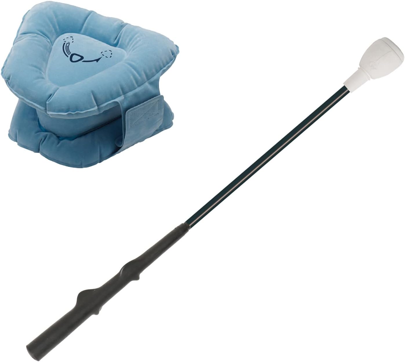 • 三角先生【GV0366】を空気で膨らませた後、腕に装着して挟みながらスイング練習、アプローチショット練習、パター練習など、腕の三角を崩さないように、キープしながらスイングします。