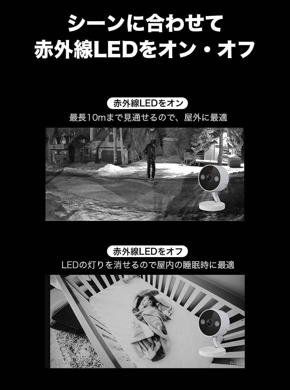 - 【インビジブルIRモード】2つの赤外線モードを搭載。ペットの見守りなどには、LEDが邪魔にならない”インビジブル”(見えない)赤外線で守ろう。