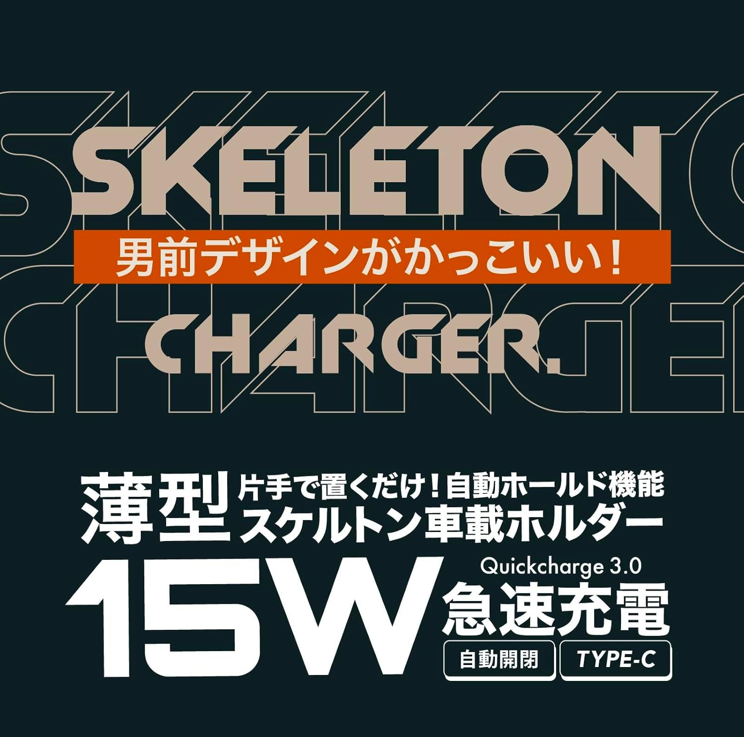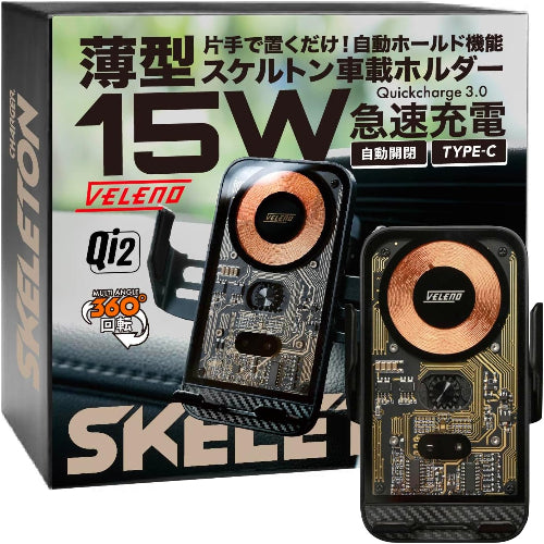 VELENO 車載スマホホルダー スケルトン 自動ホールド 15W急速ワイヤレス充電 360°回転