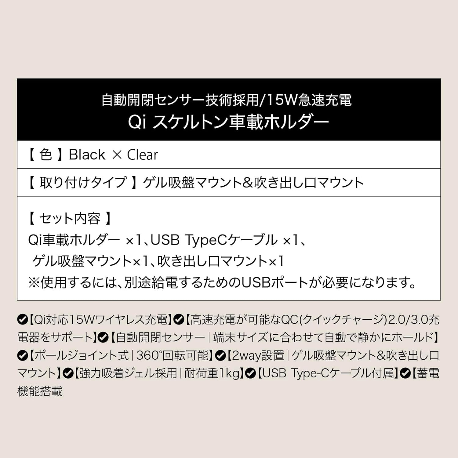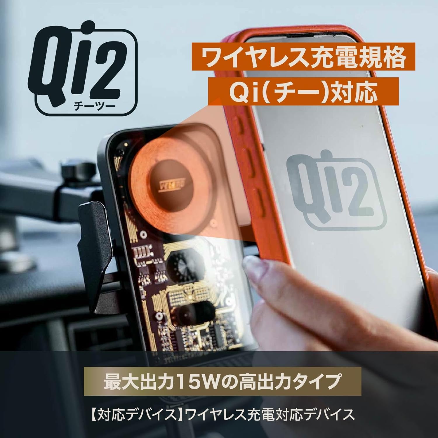 - 【ご注意】Qi2充電は3mm以下のケースに対応。磁気干渉や凹凸面、レザー調ダッシュボードへの吸盤装着不可。素材によっては跡が残る可能性があります。 Qi2で充電を行う場合は15w以上の電力供給が必要です。