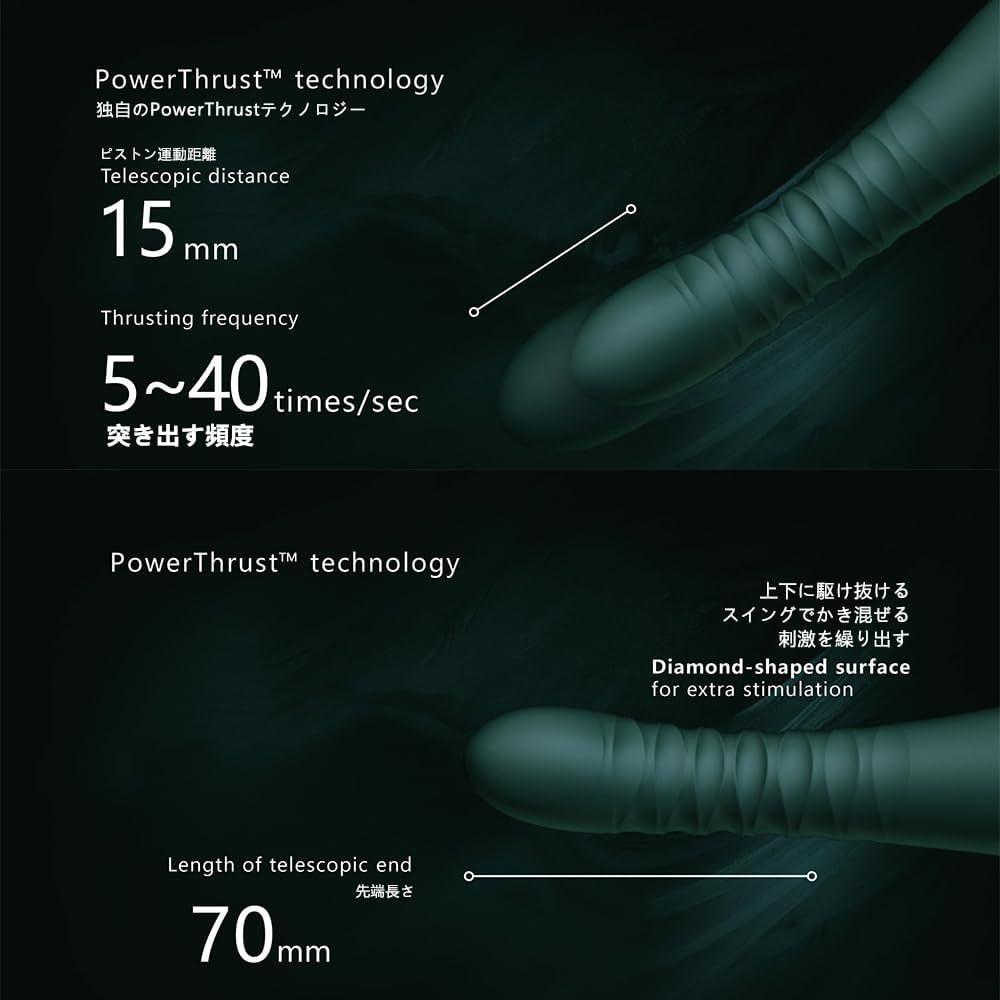 - 💛振動×ピストン、画期的なPowerThrustテクノロジーでピストン運動距離15mm、 突き出す頻度毎秒5-40回を実現。★四段階振動+八種類ピストンパターン、自分の好みに合わせていろんなバリエーション楽しめることができます。