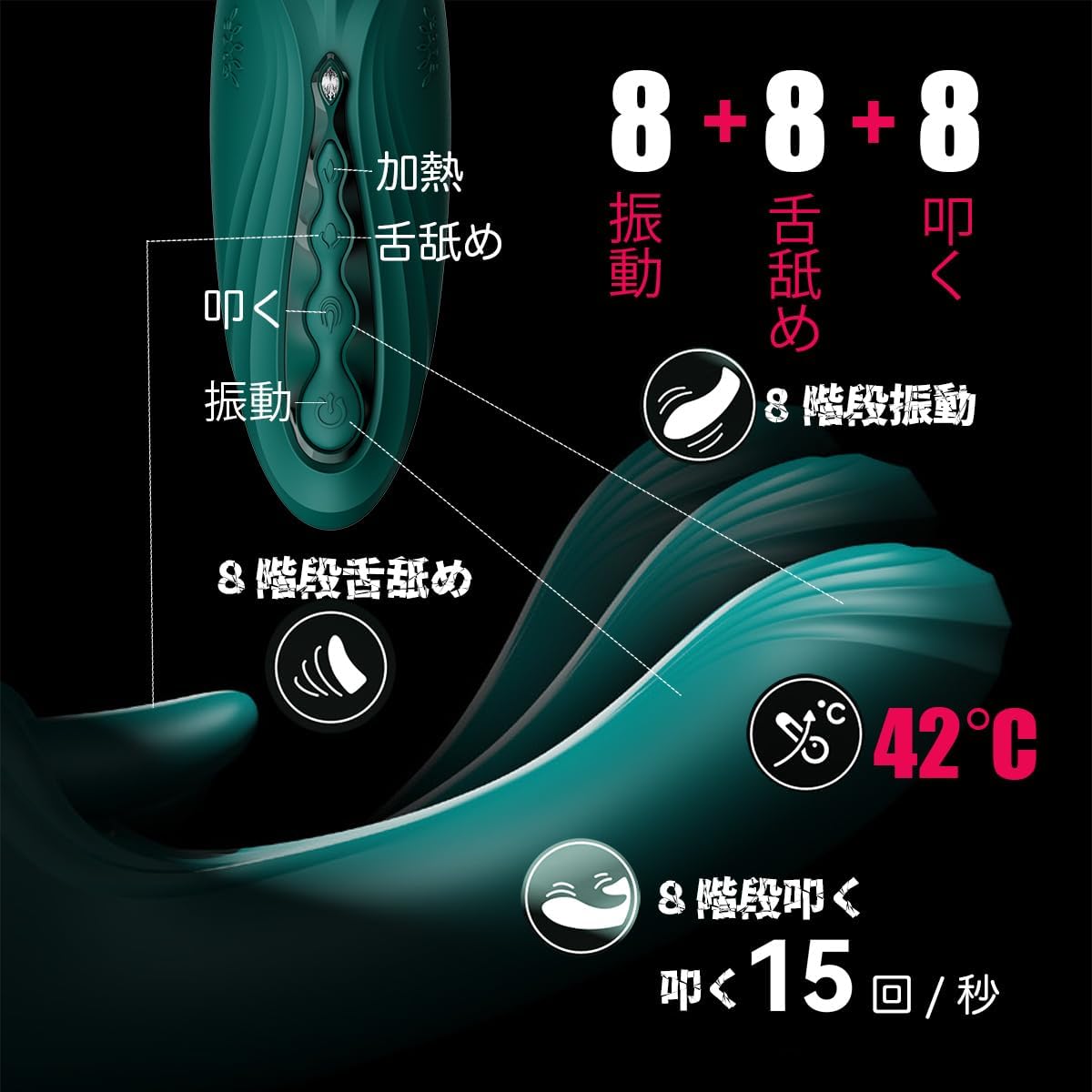 - 💓至福の快感 – 8種振動&舌舔&敲撃でG点・C点を刺激、愛の夜を彩る贅沢な体験。